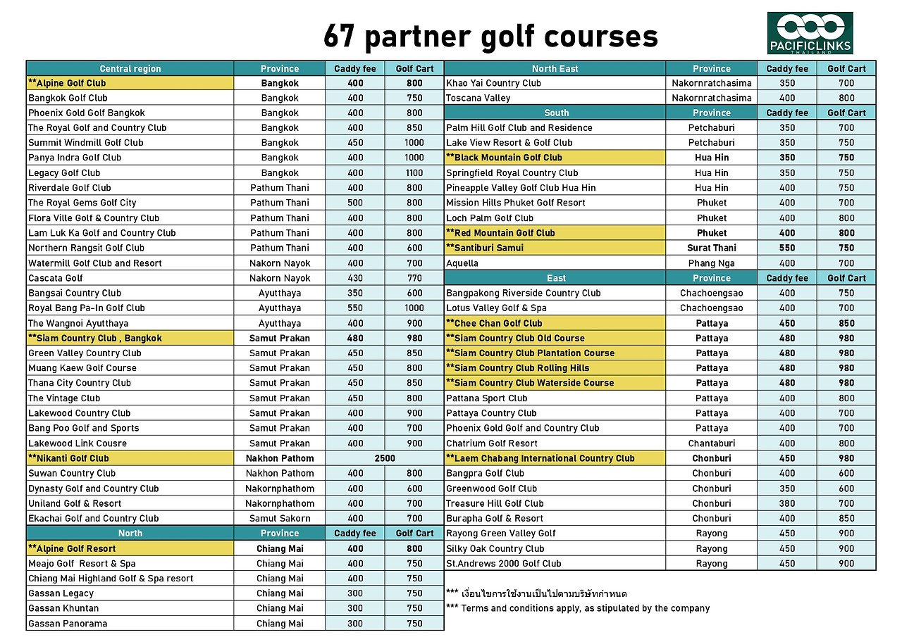 태국내 골프장은 캐디피와 카트비는 업데이트중이라 가격이 다소 다를수 있습니다.