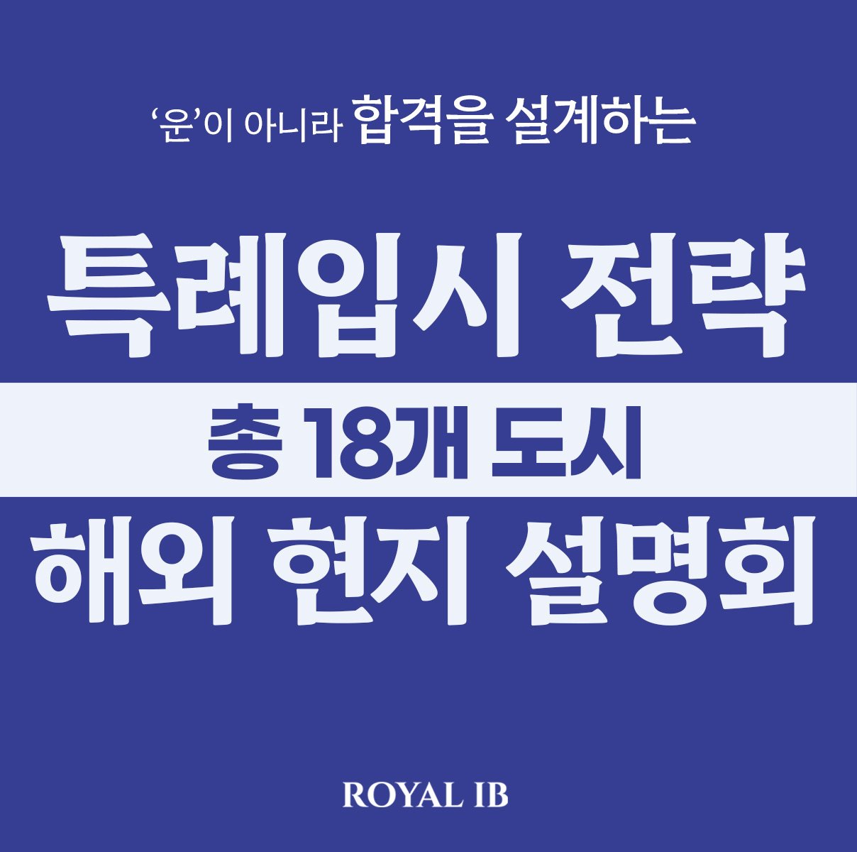 #로얄아이비 #해외설명회 #IBDP #IB학원 #압구정IB학원 #특례입시 #재외국민입시 #입시전략