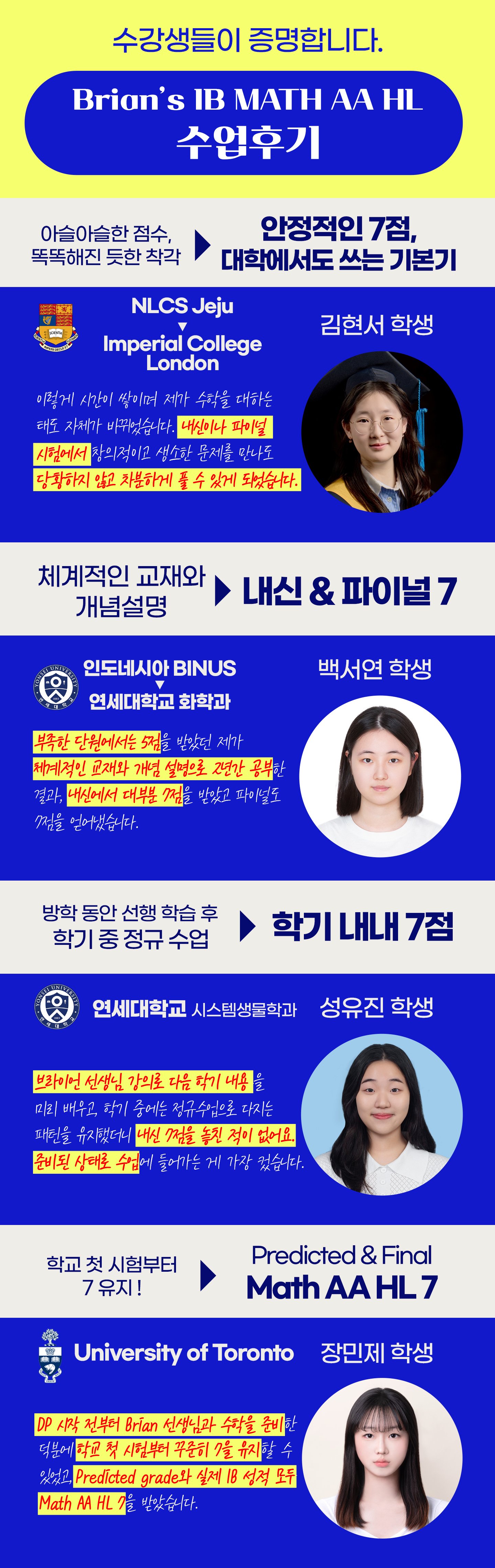 [내신대비반 개강] IB Math AA HL, 시험 배점 80% 이상, 모르면 7점은 없다? 01.23 18:26