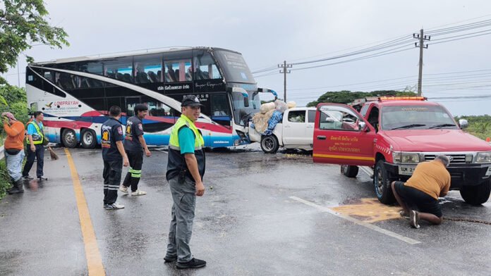 1차 사고는 승용차와 픽업트럭이 충돌했고 이후 외국인 관광객 24명을 태운 관광버스가 픽업트럭과 충돌했다.