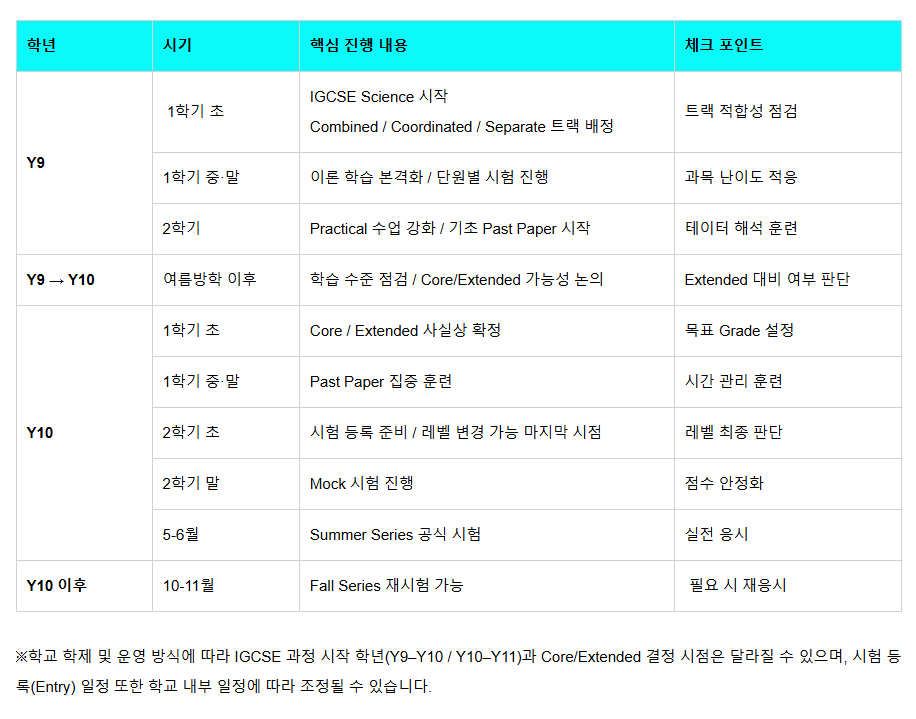 ⏱️ IGCSE 과학 선택부터 시험까지 (2년 타임라인)