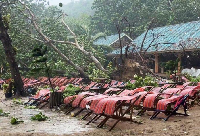 지난 일요일 갑작스러운 폭풍으로 푸켓인근 헤이섬에서 나무가 해변 의자를 덮치면서